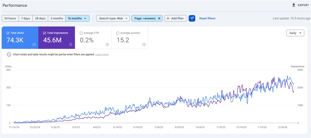 The Q&A is now around 5% of their overall traffic...and should continue to grow if they stay disciplined with ensuring that they're publishing valuable Q&A's that are actually helpful to their audience.