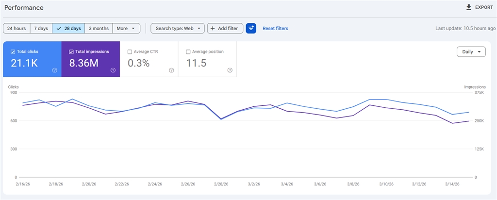 and this is their overall traffic for their whole site (not filtering by their Q&A knowledge base) for that same period: