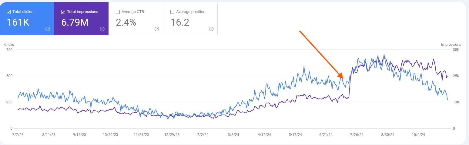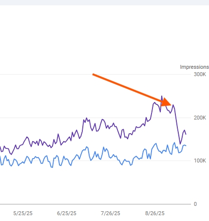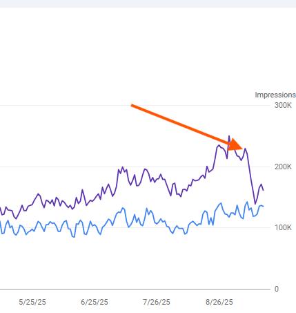 You may have seen a huge drop in impressions lately on Google Search Console, that looks like this:
