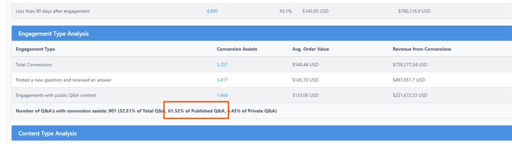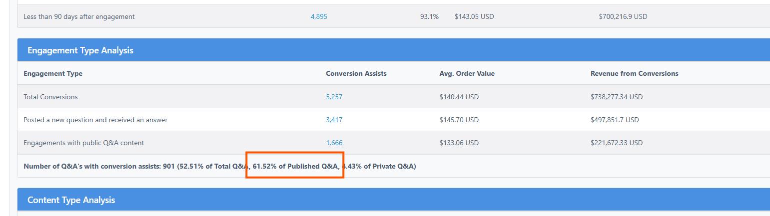 Well.....like it's always been "Content is King" but it's not the content that's gotten crushed with these latest Google Updates (by latest, we mean the last 3 years).....not only in impressions but these traditional content creation practices are also getting crushed with the clicks. Bottom line....you need to stop gaming Google, and publish actual valuable content based on your actual experience. At Answerbase, the Q&A we power is based on real customer requests for information...and enable you to be "first to market" with that information that real people are searching for on Google, AI...or wherever content is surfaced to fulfill informational searches. Now, with Answerbase....we're able to recognize the conversion attribution (real revenue) and value of the content very early on....and then you match that with search volume...and THAT is the stuff that is worth you doing a deeper dive on. If you're a business and creating content that is actually valuable for your audience....a high percentage of that SHOULD convert, and you should be able to see that. We see on average 21% of Q&A's have conversion attribution but we've seen this very high. See this example below where 61% of their Q&A pairs have conversion attribution.