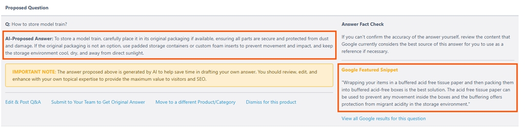 The most important thing you need to note when considering publishing Q&A on Answerbase....is you should only publish a Q&A if it is relevant to the audience of the page that you're optimizing for. If you follow this rule, you should do just fine.....resist the temptation of trying to game Google....utilize these tools to service your visitors well with great information. For example...when we propose a "People Also Asked" questions as you see here....note that we give you what answer AI proposes and also will let you know if Google has defined a best answer....see these two sections here: