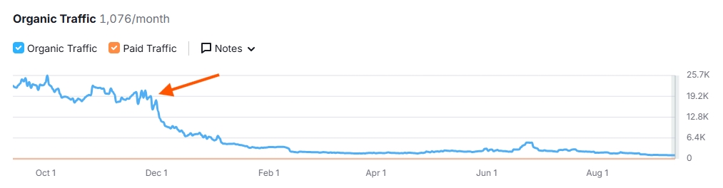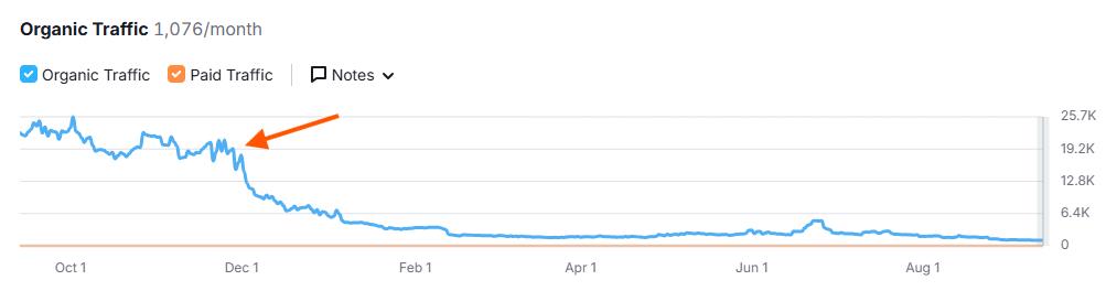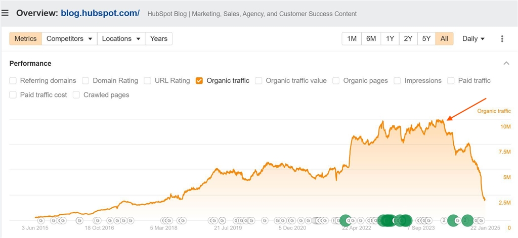 To give you an idea of how bad it's gotten, even the company Hubspot who created the whole idea of "Content Clusters" and "Topical clusters of content to show Google you're a topical authority for certain keywords"....they've gotten annihilated with these updates. See how their blog crushed 80% after the December Core Updates from Google...