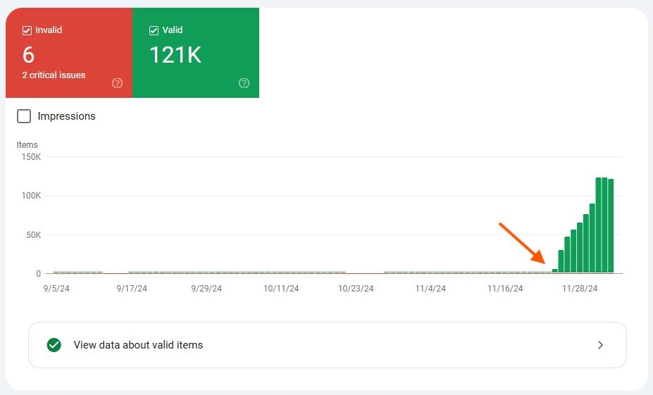 The first step is to schedule a demo so we can ensure you're up to date on all of these changes and we can also point out some "low hanging fruit" on your site to ensure your visibility on ecommerce results is maximized (no charge, we'll just inform and help). See how the eligibility for visibility on popular products tables jumps from 1200 valid "merchant listings" to over 120K within just a couple weeks...