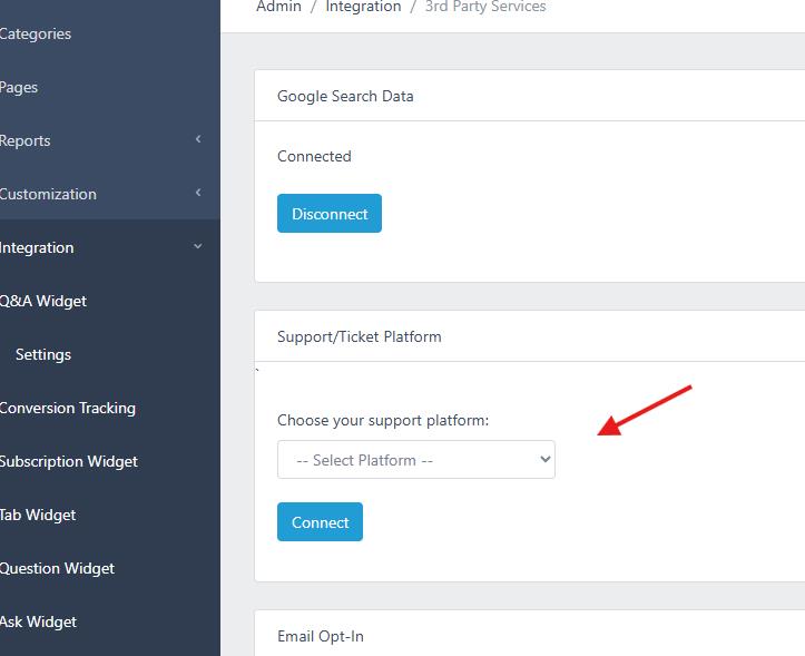 Select your help platform and click the button "Connect".